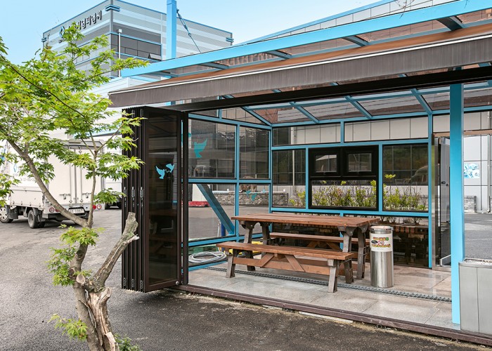 자유로운 휴식을 위한 야외 휴게 공간 겸 흡연실