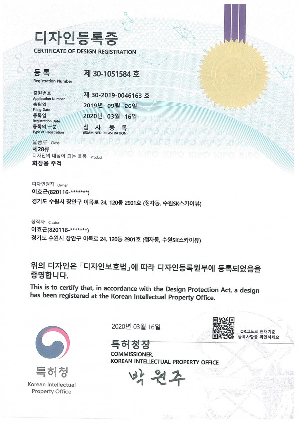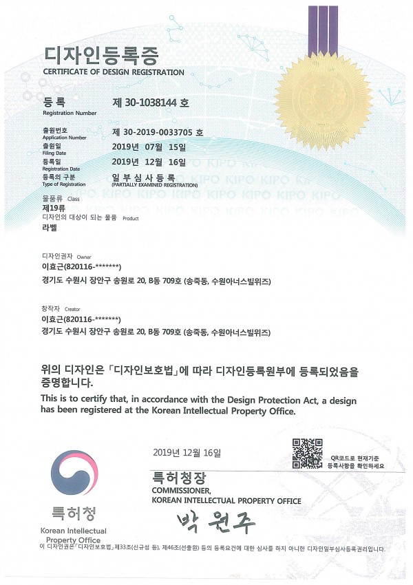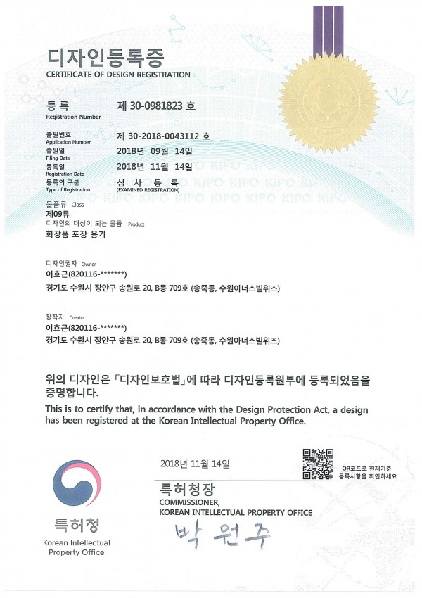 디자인 디자인 등록증