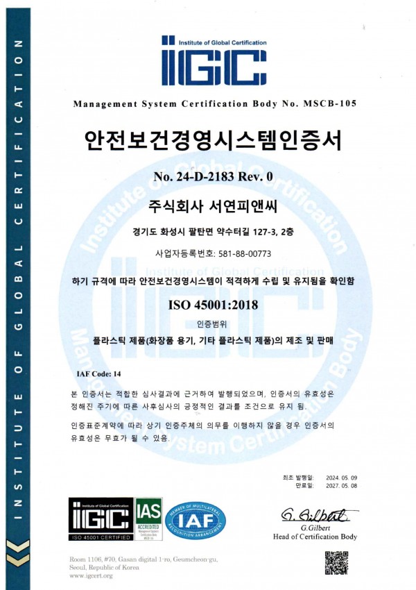 인증서 ISO45001