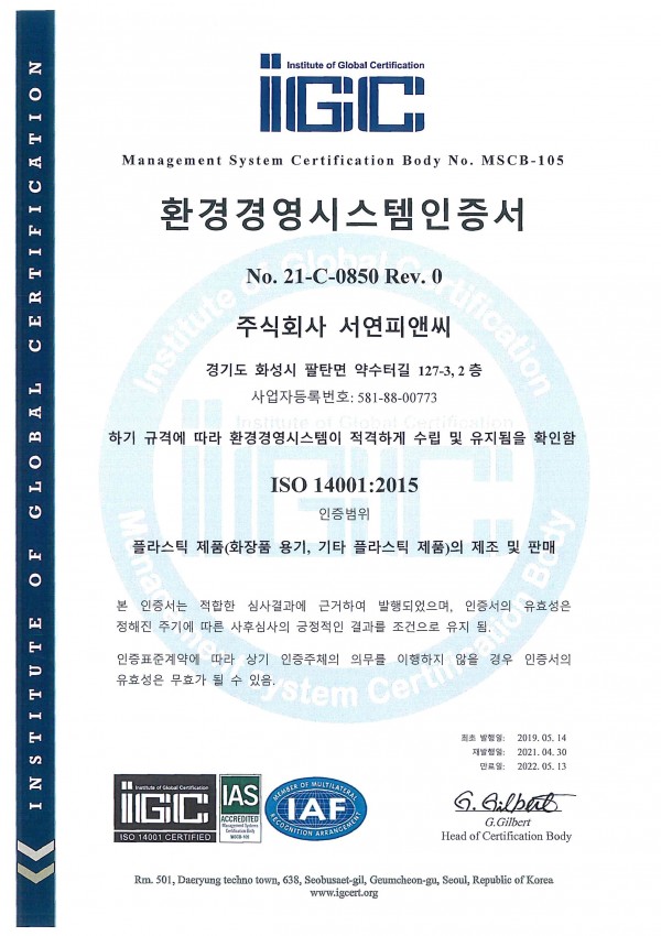 인증서 ISO14001