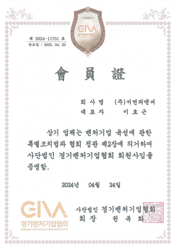 기타 경기 벤처기업 협회 회원증