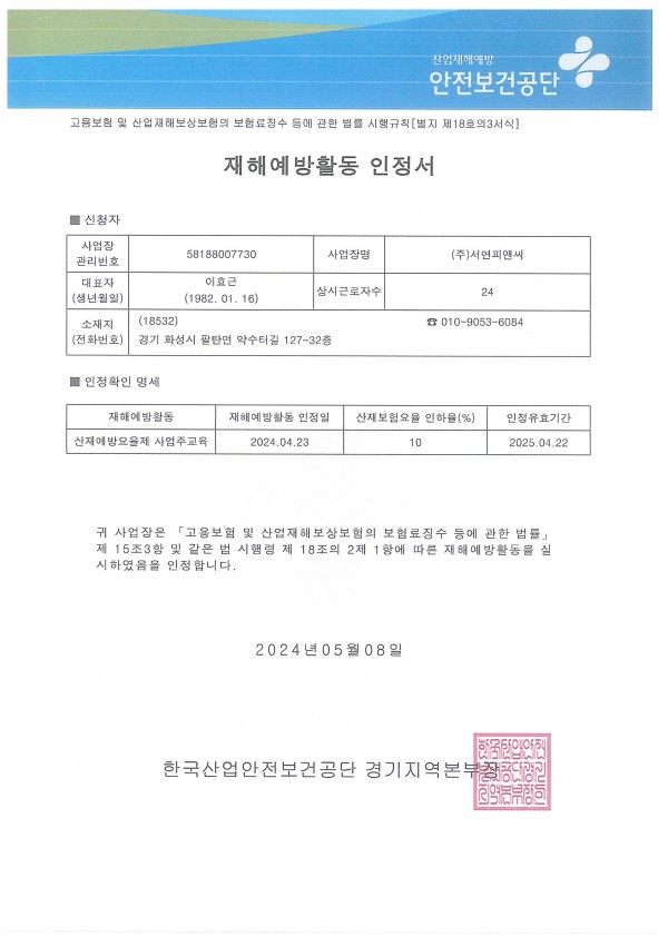기타 재해 예방활동 확인서